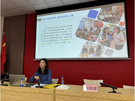 “兵支书”刘绮嫦以“推进红色基因传承 激发退役军人力量”为题,介绍了西区烟洲社区“五圈融合”的基层治理特色模式,从基层社区实际情况出发,分享基层治理经验感悟,通过开展“圆桌会议”“兵支书”大讲堂等活动方式,增强社区退役军人对党忠诚的政治本色,为乡村振兴添砖加瓦、贡献力量。