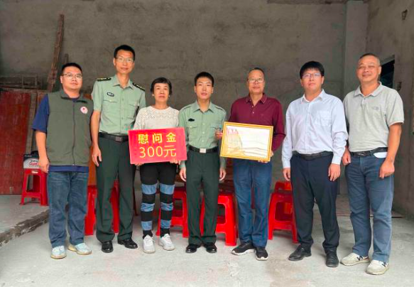 慰问组为何财华及其家属送上“四有”优秀士兵喜报。