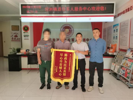 11月12日,中山市坦洲镇退役军人服务中心收到了一份特殊的礼物——退役军人李叔在家人的陪同下,专程送来一面写着“勤政为民显真情,尽心尽责暖人心”的锦旗,表达对中心帮助其完成危房改造、实现安居梦的诚挚谢意。