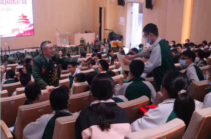 11月28日下午,一场主题为“赓续红色血脉 共筑国防长城”的特殊课堂,在东区松苑中学报告厅里激荡起澎湃的爱国情怀。这不是一次普通的讲座,而是一场穿越时空的对话,让青春的校园与峥嵘的岁月相遇,让年轻的学子与功勋的老兵并肩。