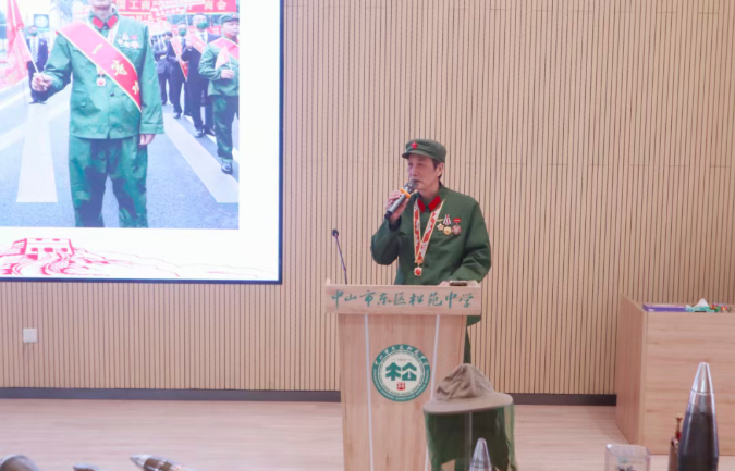 当中山市“最美退役军人”“戎耀香山”老兵宣讲团负责人梁华站在讲台前,他身上闪耀的是新时代退役军人的风采与担当。他深情讲述,与同学们热烈互动,将军人保家卫国的神圣职责,化为了可感可知的坚守与奉献,在同学们心中勾勒出新时代“最可爱的人”的清晰画像。