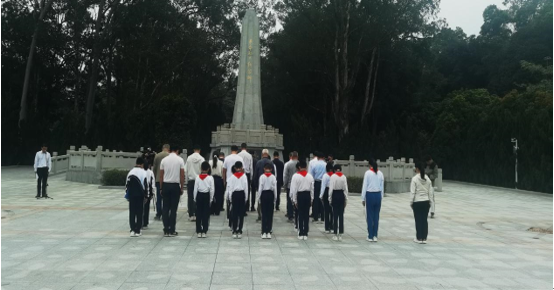 默哀仪式结束后,两名少先队员代表以稚嫩却坚定的声音朗诵诗歌:“这盛世中华,将由我们用智慧、用汗水、用永不熄灭的热爱,继续书写辉煌。”诗句传递出少年一代铭记历史与勇担未来的坚定信念。随后,珠江纵队老战士后代分享革命故事,鲜活的细节与真挚的情感将现场听众带回烽火岁月。全体参与者有序前往革命烈士纪念碑瞻仰致敬,并敬献鲜花寄托哀思。