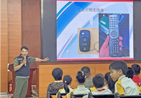 西区中心小学内,省、市最美退役军人结合自身经历,讲述军人忠诚担当与“海空卫士”王伟等英雄故事。随后,无线电运动协会带来一堂科普课,学生们尝试摩斯密码收发操作,在“滴答”声中感受科技安全的重要性。